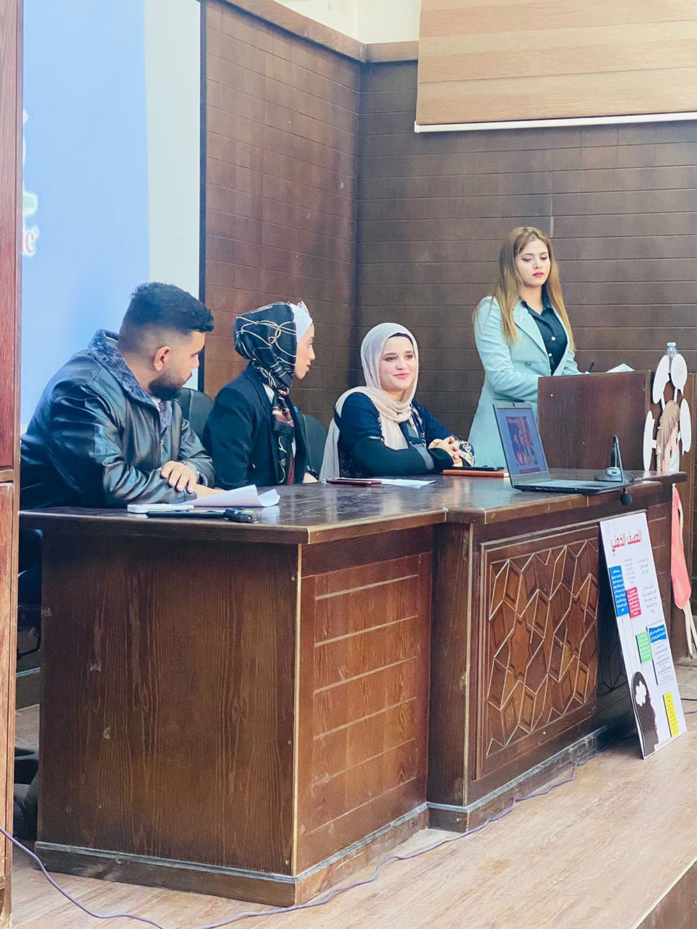 وقدم مجموعة من الطلبة جلسة عصف ذهني للقانون بين الماضي والحاضر والمستقبل نظراً لما لهذا الموضوع من أهمية واضحة في المجتمع .
