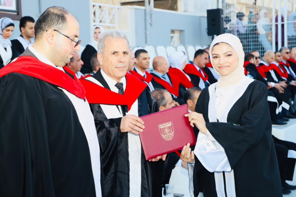 وفي ختام الحفل سلم عمداء الكليات الشهادات على الطلبة الخريجين والبالغ عددهم (932) طالبا وطالبة.