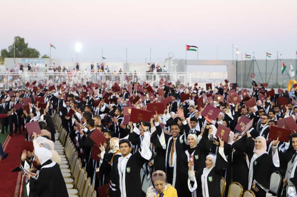 وقدم عمداء الكليات التهاني والتبريك بإسم رئيس الجامعة وأسرتها إلى الطلبة الخريجين وذويهم معبرين عن اعتزاز الجامعة بجميع طلبتها ليكونوا مرآه يعكسون الصورة المتميزة لها متمنيين لهم دوام التوفيق والنجاح في حياتهم العلمية والعملية وأن يكونوا على الوعد والعهد مخلصين لوطنهم وللقيادة الهاشمية مؤديين رسالتها في كافة المجالات.