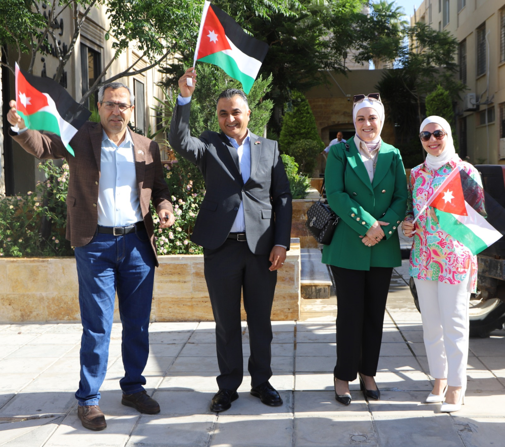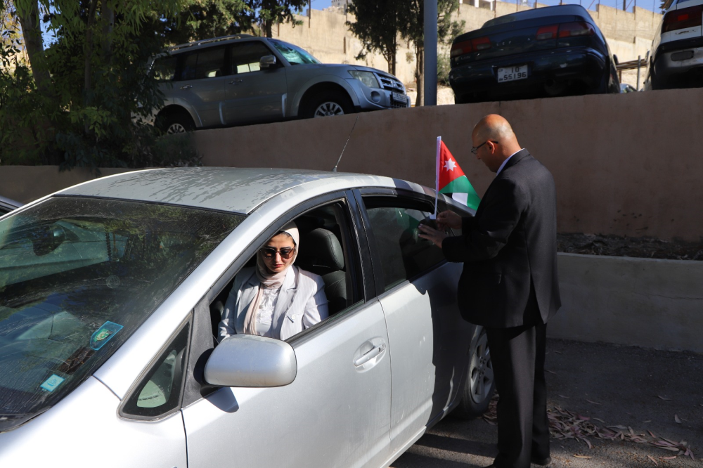 بتوجيهات من عطوفة رئيس الجامعة الأستاذ الدكتور أحمد فخري العجلوني، نفذت دائرة العلاقات العامة اليوم حملة لتوزيع العلم الأردني على سيارات الجامعة ومركبات الموظفين بمناسبة العيد الثامن والسبعين لاستقلال المملكة الاردنية الهاشمية.