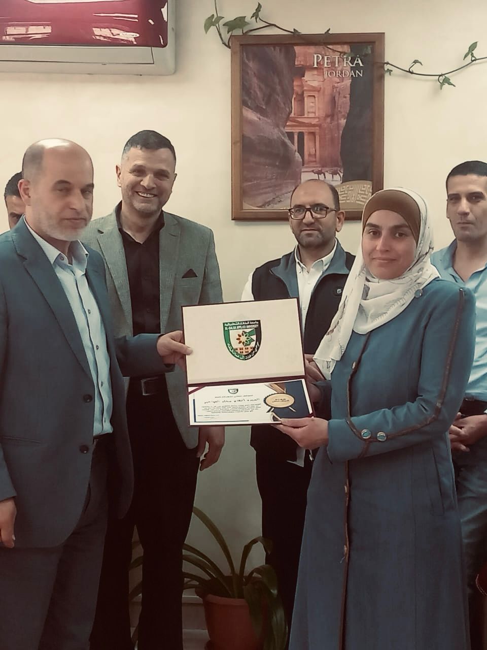 انطلاقًا من توجيهات عطوفة الأستاذ الدكتور أحمد فخري العجلوني، رئيس جامعة البلقاء التطبيقية، الهادفة إلى تعزيز الأداء الوظيفي وتحفيز بيئة عمل قائمة على التنافس الإيجابي والتميز، كرّم السيد مهند خليفات، مدير وحدة الشؤون المالية، الزملاء الكرام: