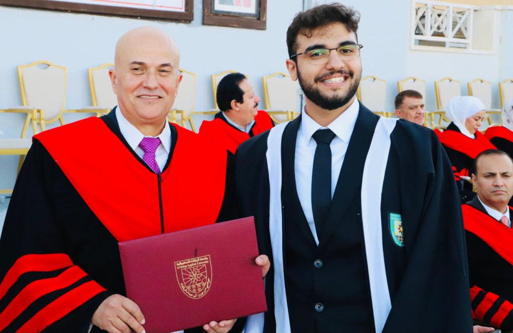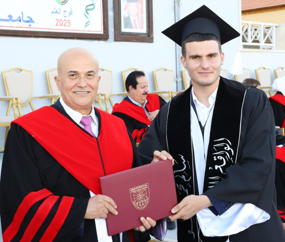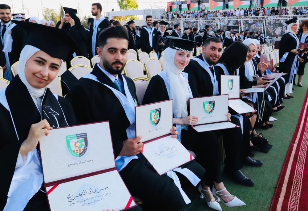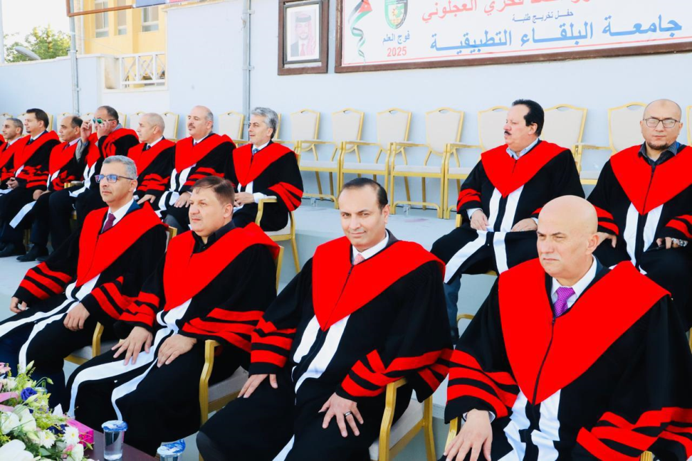 مندوبًا عن رئيس جامعة البلقاء التطبيقية الأستاذ الدكتور أحمد فخري العجلوني، رعى كل من عميد كلية الأمير عبدالله بن غازي للاتصالات وتكنولوجيا المعلومات الدكتور أسامة الضرغام، وعميد كلية الذكاء الاصطناعي الأستاذ الدكتور عمر الزعبي، وعميد كلية الحقوق الأستاذ الدكتور أحمد النعيمات، حفل تخريج الفوج الخامس والعشرين (فوج العلم) من طلبة كلياتهم، وذلك بحضور عميد شؤون الطلبة الأستاذ الدكتور خلف ختاتنة، وأعضاء الهيئة التدريسية ، وجمع غفير من ذوي الطلبة، على الملعب الرئيسي في الجامعة.