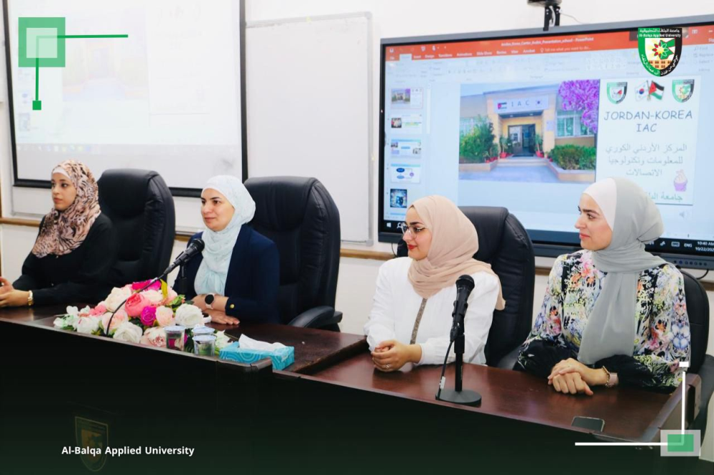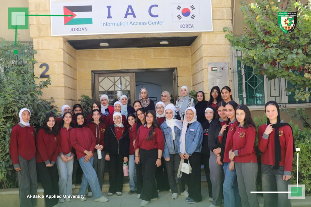 استقبل المركز الأردني الكوري للمعلومات وتكنولوجيا الاتصالات في جامعة البلقاء التطبيقية مجموعة من طلبة الصف الثامن (ذكور) والتاسع (إناث) من مدارس السلط الأهلية، ضمن زيارة تعليمية تهدف إلى تعريف الطلبة بآلية عمل المركز والمعدات التقنية المتوفرة فيه، وذلك في إطار تعزيز الثقافة الرقمية لدى الطلبة وربطهم بالتطورات التكنولوجية الحديثة.