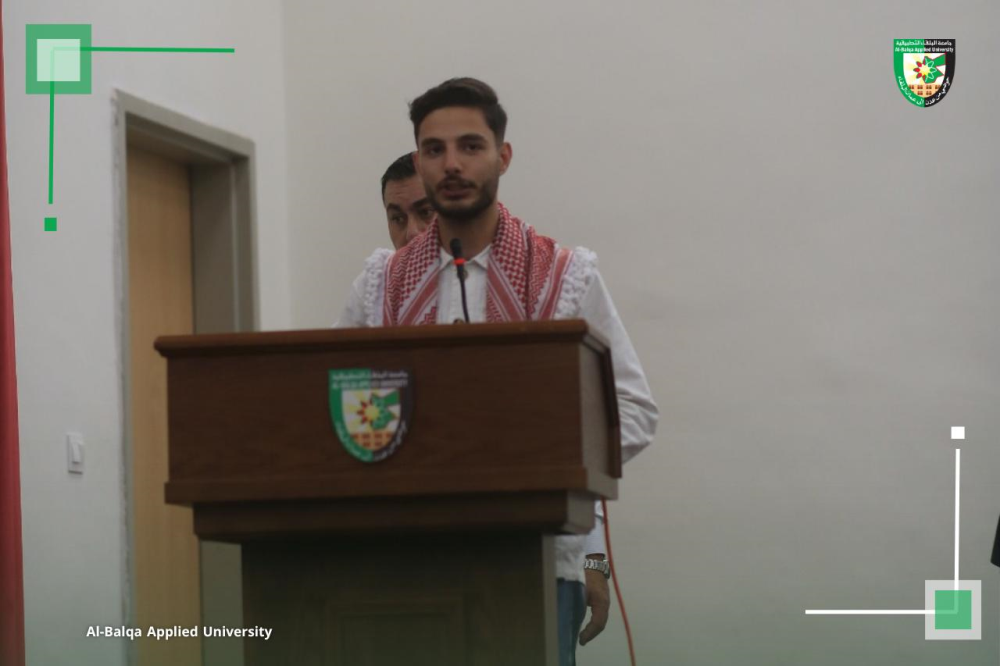 وفي مستهل الحفل، رحّب عميد الكلية بالطلبة وذويهم، مهنئًا إياهم بقبولهم في جامعة البلقاء التطبيقية / كلية الحصن الجامعية، ناقلًا تحيات الأستاذ الدكتور أحمد فخري العجلوني رئيس الجامعة. ودعا العميد الطلبة إلى الاستفادة من الإمكانات المتاحة في الكلية وتسخيرها في تحقيق طموحاتهم الأكاديمية والعلمية.