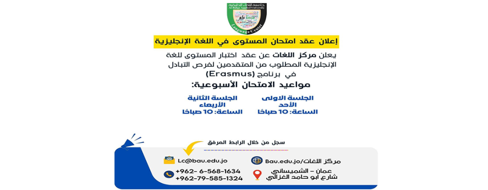 انطلاقا من الدور المحوري الذي تضطلع به المراكز العلمية في جامعة البلقاء التطبيقية في دعم التميز الأكاديمي، وبتوجيهات من عطوفة رئيس الجامعة الا ...   التفاصيل