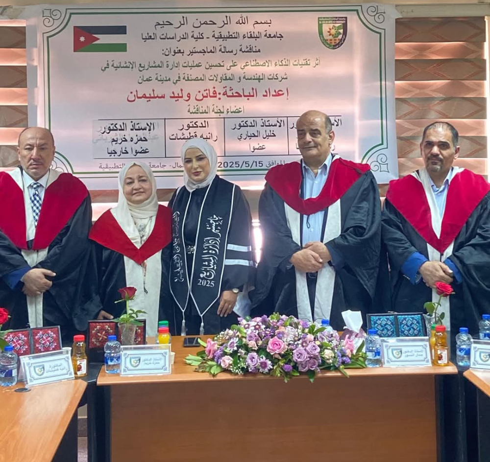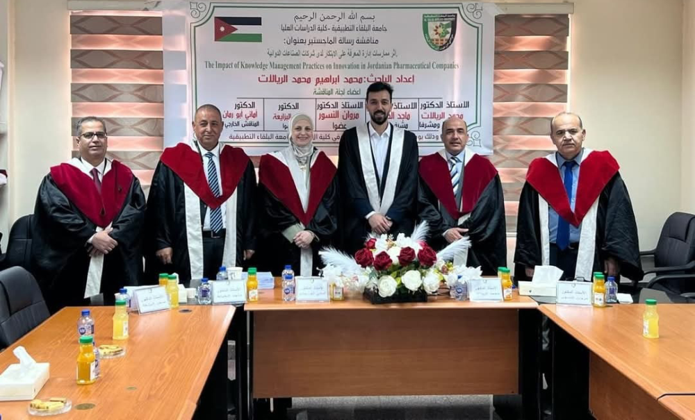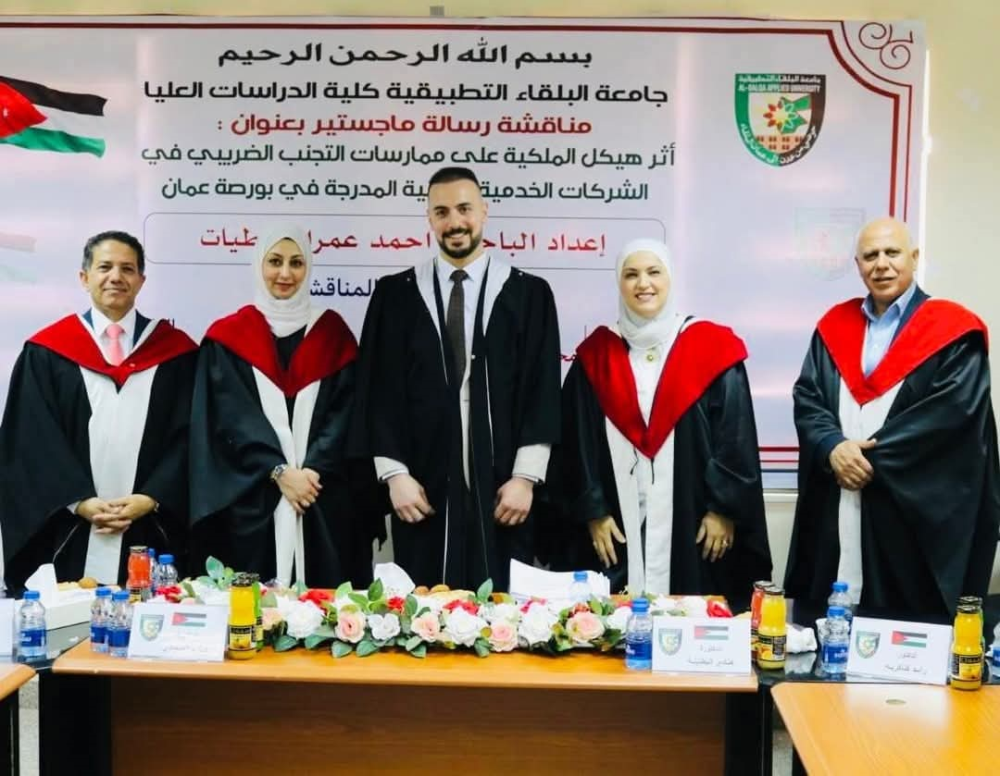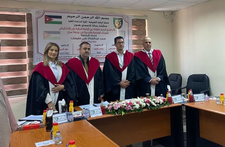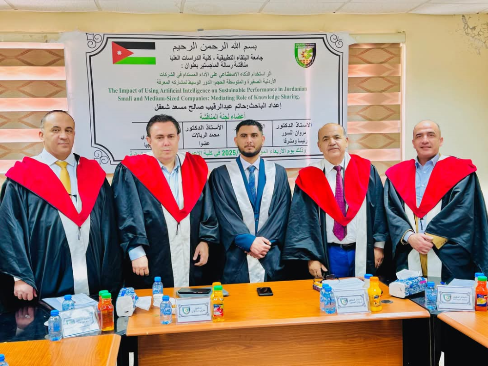 بحضور نخبة من أعضاء الهيئة التدريسية، تمت في كلية الأعمال – جامعة البلقاء التطبيقية مناقشة رسالة ماجستير للطالب حاتم عبدالرقيب بعنوان: