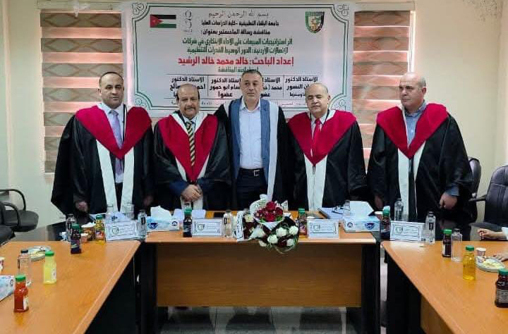 نبارك للباحث خالد محمد خالد الرشيد مناقشته رسالة الماجستير في جامعة البلقاء التطبيقية – كلية الاعمال بعنوان: