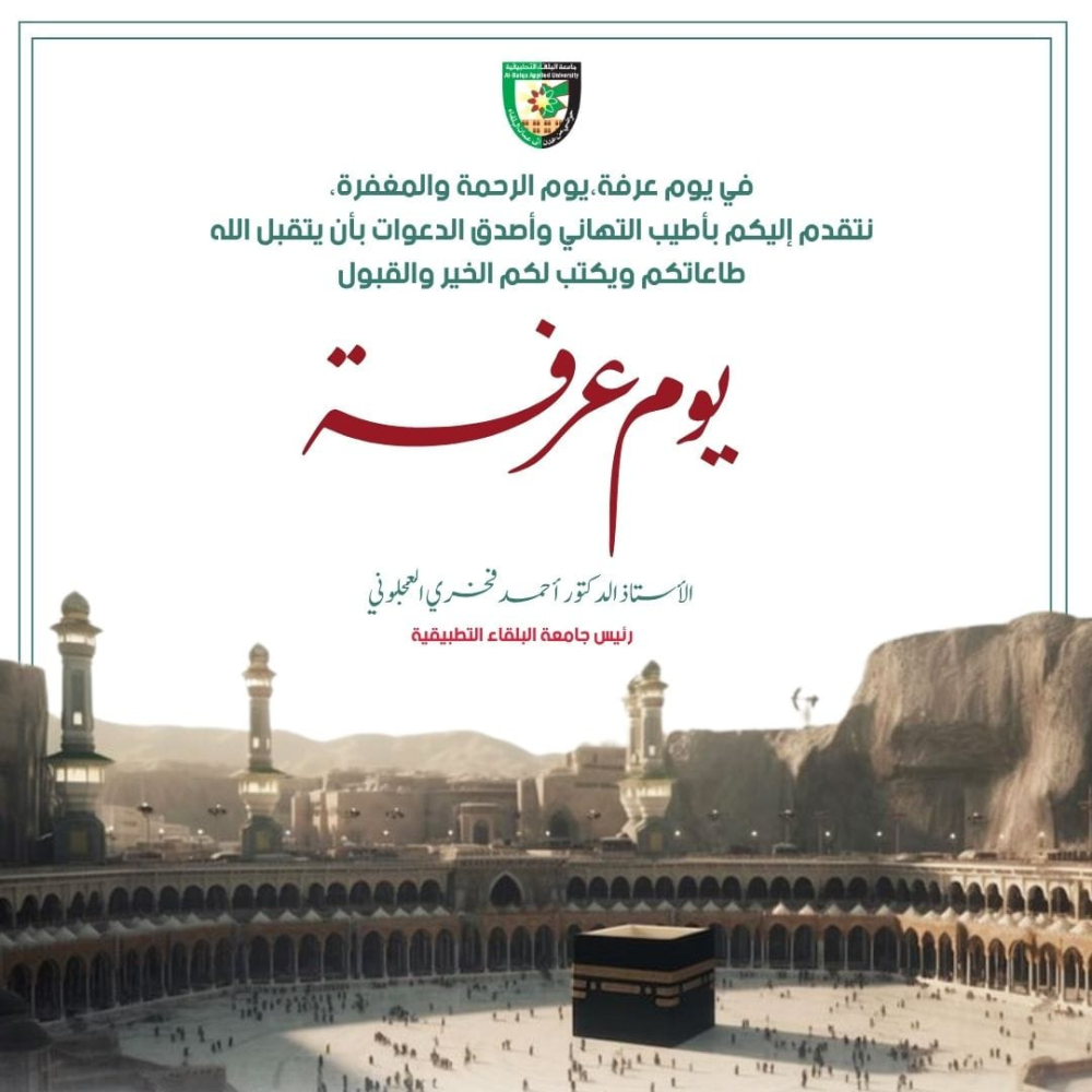 العجلوني يهنئ أسرة جامعة البلقاء التطبيقية بمناسبة يوم عرفة المبارك