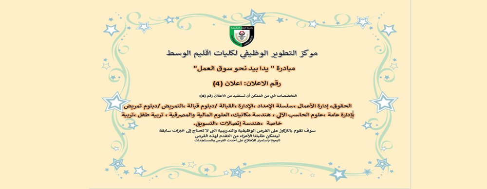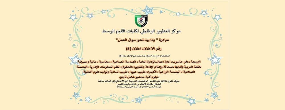 استمرارًا لجهود مركز التطوير الوظيفي لكليات إقليم الوسط في جامعة البلقاء التطبيقية ضمن مبادرة "يدا بيد نحو سوق العمل"، نواصل تقديم ا ...