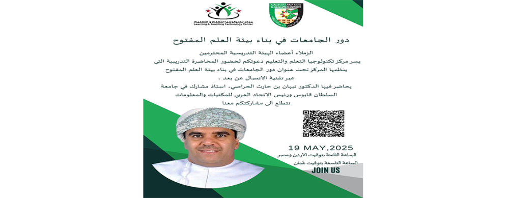 يهديكم مركز تكنولوجيا التعلم والتعليم أطيب التحيات، ويسرنا دعوتكم لحضور المحاضرة التدريبية الهامة التي ...