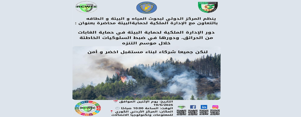 يسر المركز الدولي لبحوث المياه والبيئة والطاقة دعوتكم لحضور محاضرة توعوية بعنوان ( دور الإدارة الملكية لحماية الطبيعة في حماية الغابات من الحر ...