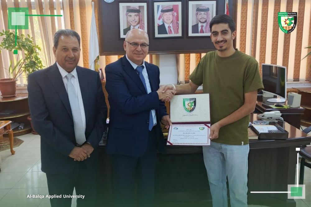 كلية الحصن الجامعية في جامعة البلقاء التطبيقية تكرم الطالب نمر الزيود لفوزه بالذهبية في مسابقة يوم المخترعين الإندونيسي