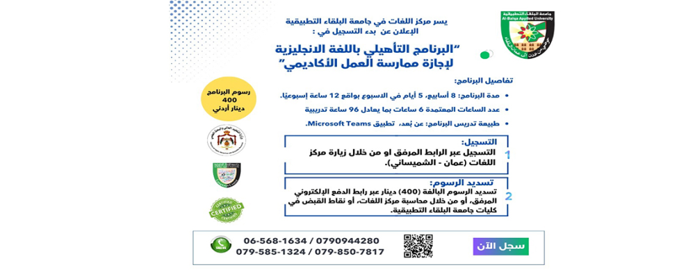 يُعلن مركز اللغات – جامعة البلقاء التطبيقية عن فتح باب التسجيل في: