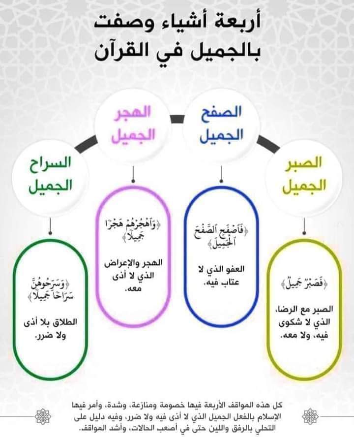 أربعة أشياء وصفت بالجميل في القران الكريم
