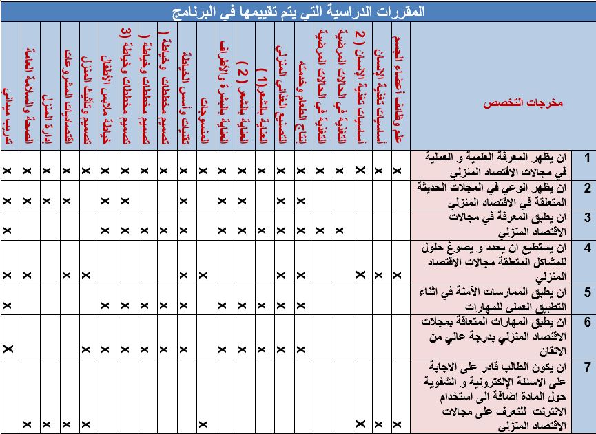 - ان يظهر المعرفة العلمية و العملية في مجالات الاقتصاد المنزلي .