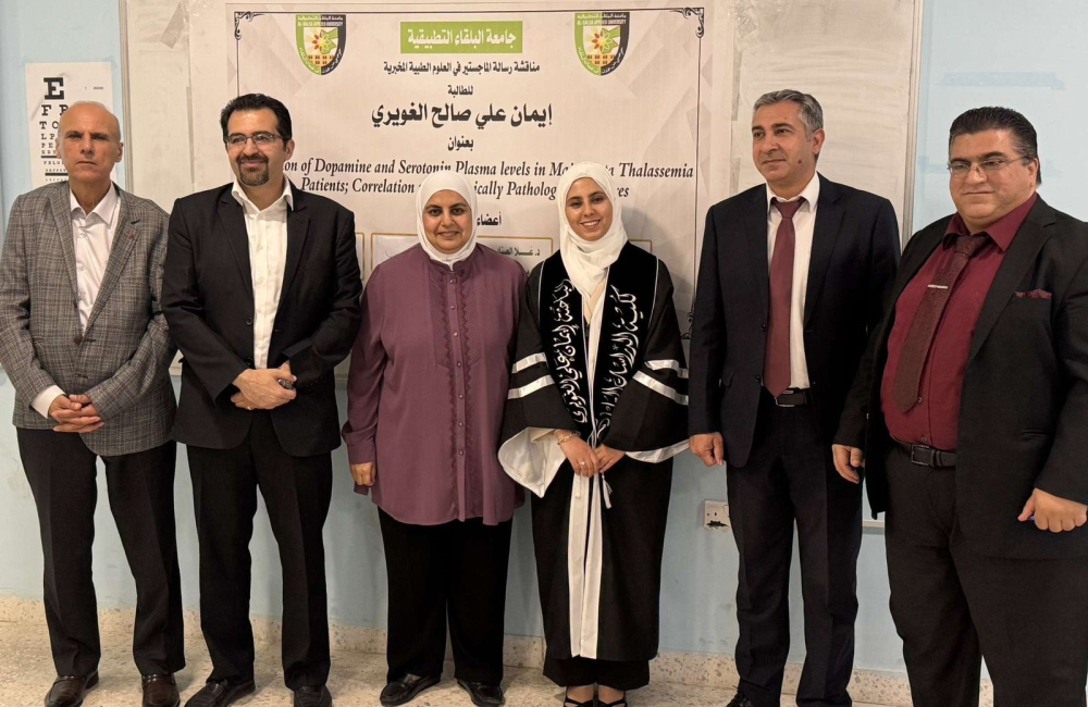 تم في قسم العلوم الطبية المخبرية مناقشة رسالة الماجستير المقدمة من الطالبة إيمان علي الغويري و الموسومة بعنوان Alteration of Dopamin and Sero ...
