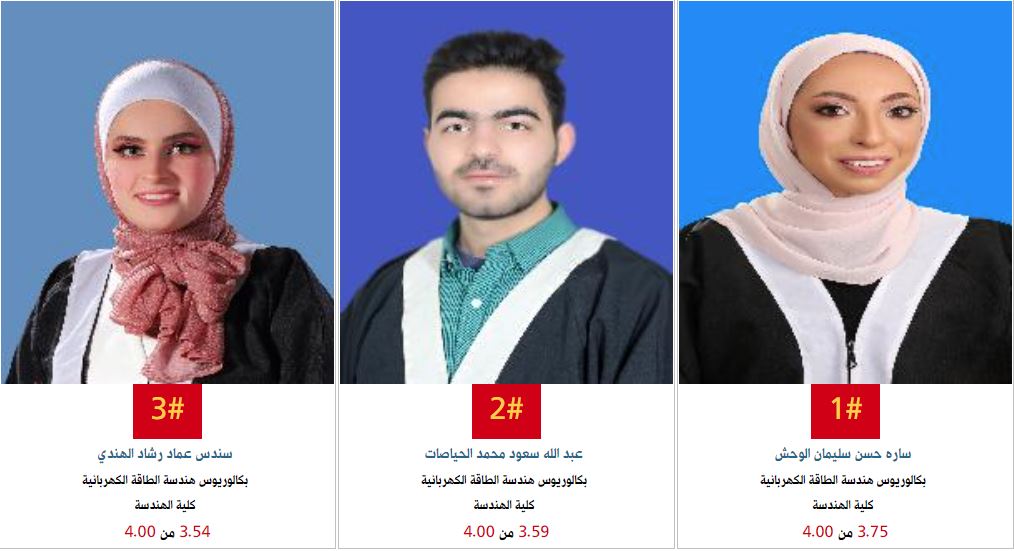 أوائل طلبة قسم هندسة الطاقة الكهربائية للعام الجامعي 2021 / 2022