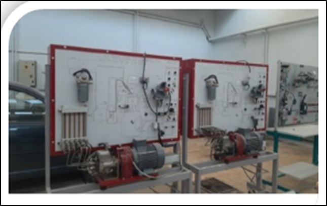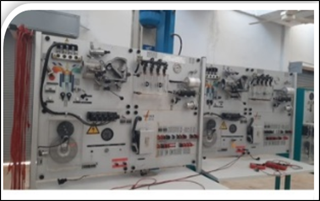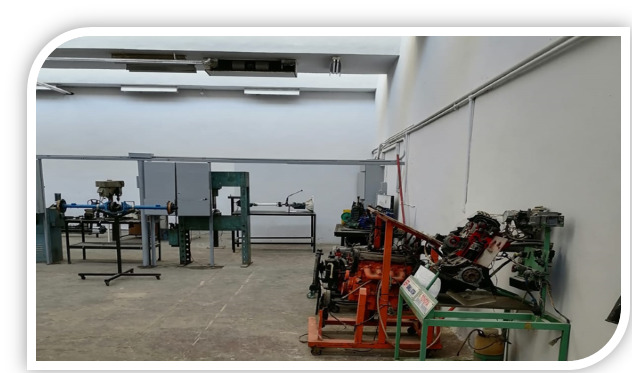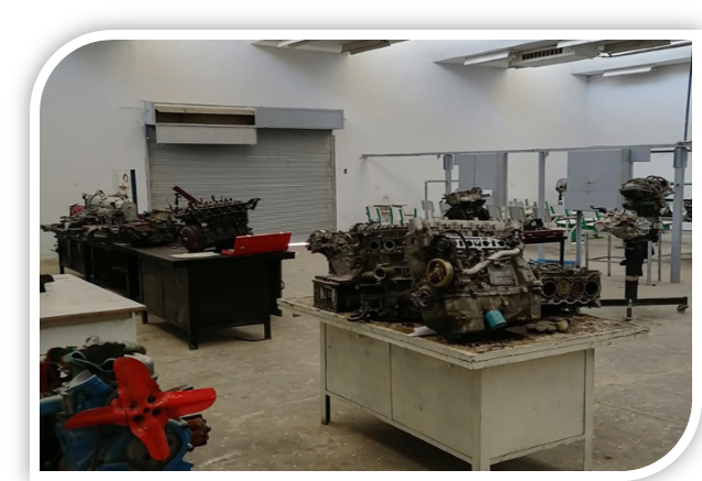 تم توفير الاجهزة اللازمة لاجراء التجارب على محركات الاحتراق الداخلي لتنفيذ الفحوصات لكل من محركات الاحتراق (بنزين وديزل)، استهلاك الهواء والوقود، والكوابح وصيانة وضبط المحرك.