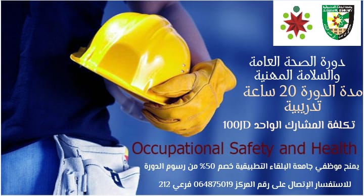 اعلان من المركز الوطني للتدريب وتأهيل المدربين / جامعة البلقاء التطبيقية عن عقد دورة الصحة العامة والسلامة المهنية