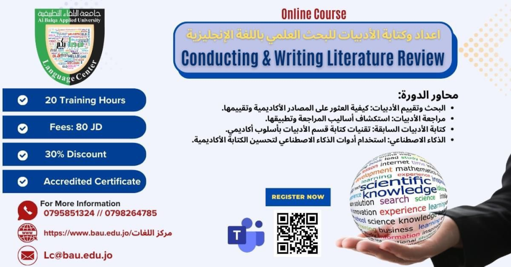 هل تواجه صعوبة في كتابة الأدبيات السابقة في بحثك العلمي؟ انضم إلى دورة تدريبية متكاملة بعنوان: "إعداد وكتابة الأدبيات للبحث العلمي باللغة الإنجل ...
