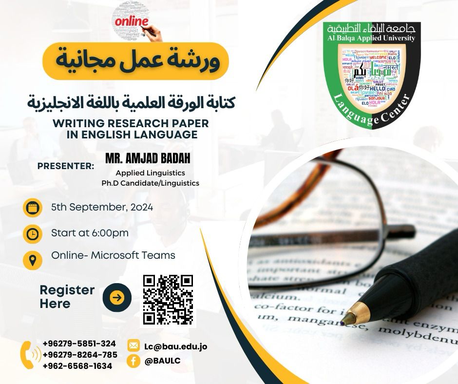يقدم مركز اللغات ورشة عمل مجانية بعنوان: كتابة الورقة العلمية باللغة الإنجليزية