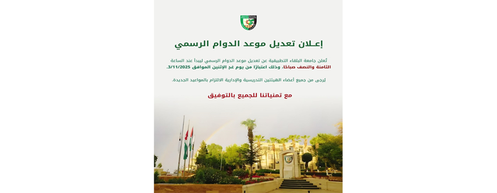 إعلان تعديل موعد الدوام الرسمي في جامعة البلقاء التطبيقية