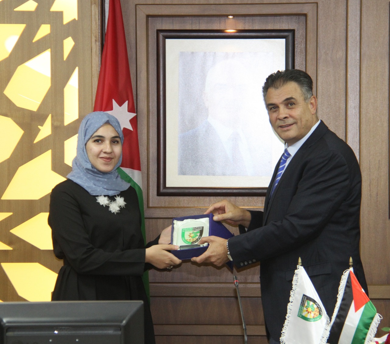 الزعبي يكّرم احدى الطالبات الرياديات بالجامعة كّرم رئيس جامعة البلقاء التطبيقية الأستاذ الدكتور عبدالله سرور الزعبي الطالبة من قسم النظم الحاس ...