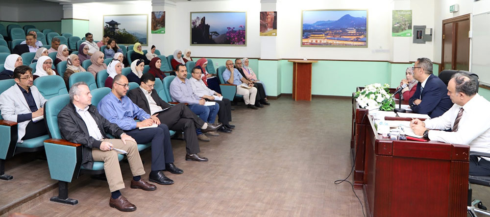 العجلوني : نؤكد على أهمية البحث العلمي  لأعضاء الهيئة التدريسية لتجويد العملية التدريسية ومخرجاتها.   العجلوني : تعمل الجامعة على إع ...