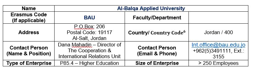 البريد الإلكتروني : Int.office@bau.edu.jo