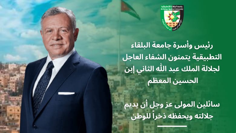 رئيس وأسرة جامعة البلقاء التطبيقية يتمنون الشفاء العاجل لجلالة الملك عبدلله الثاني ابن الحسين المعظم