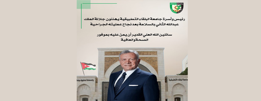 رئيس وأسرة جامعة البلقاء التطبيقية يهنئون جلالة الملك عبدالله الثاني ابن الحسين بالسلامة بعد نجاح عمليته الجراحية