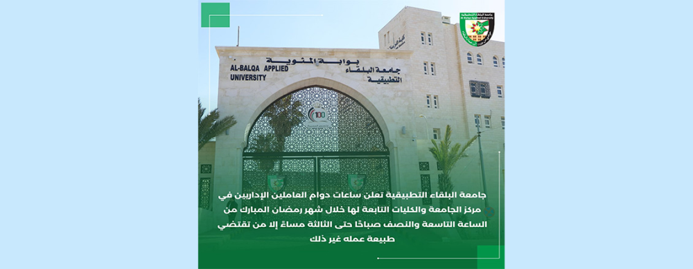 جامعة البلقاء التطبيقية تحدد ساعات دوام العاملين الإداريين في شهر رمضان المبارك
