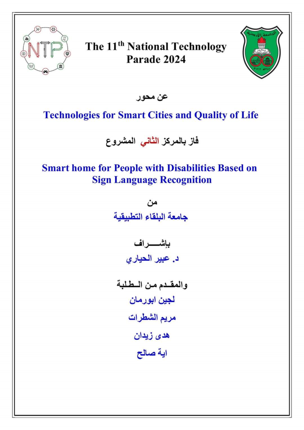 مشاركة جامعة البلقاء التطبيقية ممثله في كلية الهندسه قسم الهندسه الكهربائيه في مسابقة المهرجان الوطني التكنولوجي