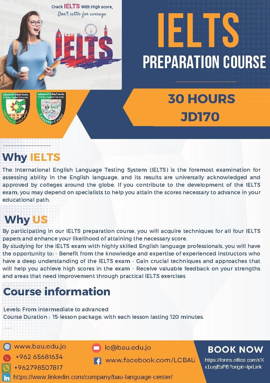 يسر مركز اللغات في جامعة البلقاء التطبيقية الإعلان عن بدء التسجيل في الدورة التحضيرية لامتحان الايلتس بواقع 30 ساعة تدريبية اون لاين ووجاهي. ا ...