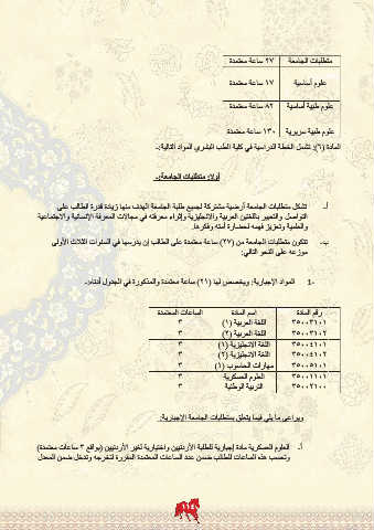 أ -العلوم العسكرية مادة إجبارية للطلبة الأردنيين واختيارية لغير الأردنيين (بواقع 3ساعات معتمدة)