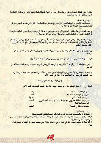 ح .يحدد الطالب في طلب القبول البرنامج الذي يرغب أن يلتحق به إضافة إلى ترتيب أولوية المسار المطلوب (الرسالة