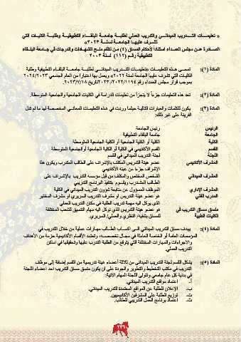 « تعليمــــات التـــــدريب الميدانـــي والتدريب العملي لطلبـــة جامعـــة البلقــــاء التطبيقيـــة وطلبـــة الكليــات التي