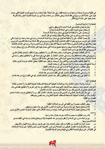السنة السادسة وعليه إعادة دراسة جميع المواد التي حصل فيها على علامة اقل من (ج).