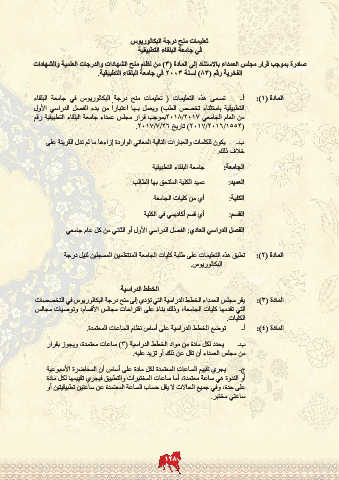 من العام الجامعي 2018/2017بموجب قرار مجلس عمداء جامعة البلقاء التطبيقية رقم
