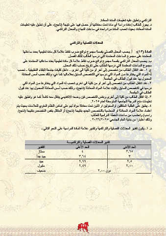المادة ( :)13أ .يحسب المعدل الفصلي بقسمة مجموع نواتج ضرب نقاط علامة كل مادة تعليمية بعدد ساعاتها