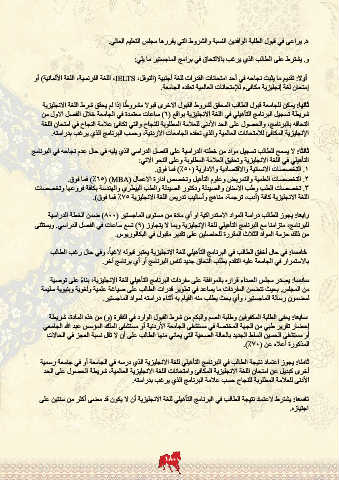 ثانيا :يمكن للجامعة قبول الطالب المحقق لشروط القبول الاخرى قبولا مشرو ًطا إذا لم يحقق شرط اللغة الانجليزية