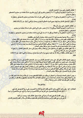 .3إعداد رسالة جامعية يخصص لها ( )9تسع ساعات معتمدة والنجاح في مناقشتها.