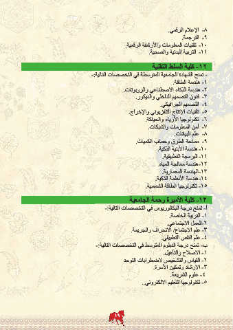 -تمنح الشهادة الجامعية المتوسطة في التخصصات التالية-: