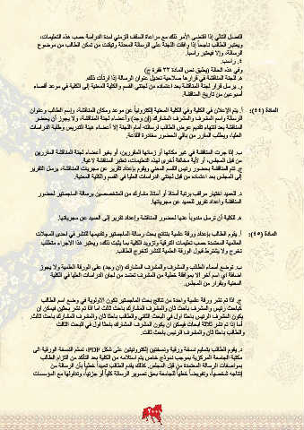 أ .يتم الإعلان في الكلية وفي الكلية المعنية إلكترونياً عن موعد ومكان المناقشة ،وإسم الطالب وعنوان المادة ( :)44