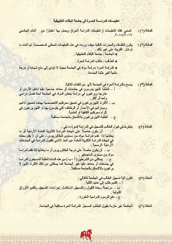 الجامعة غير ملزمة بقبول الطالب المسجل للدراسة الحرة مستقبل ًا في الجامعة.