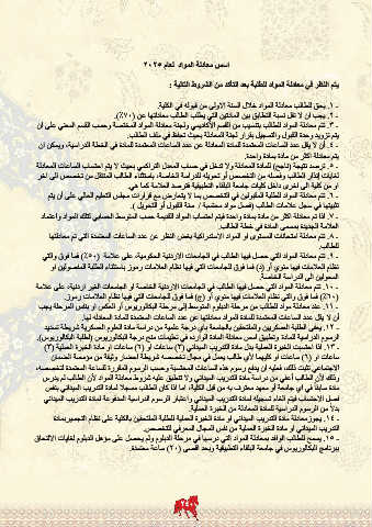 .15 -يسمح للطالب الوافد بمعادلة المواد التي درسها في مرحلة الدبلوم ولم يحصل على مؤهل الدبلوم لغايات الالتحاق