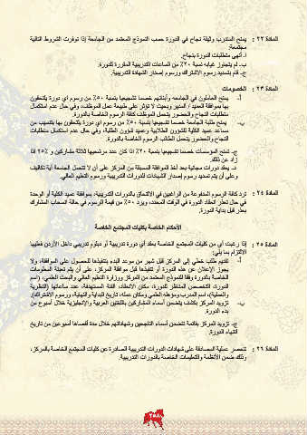المادة : 25إذا رغبت أي من كليات المجتمع الخاصة بعقد أي دورة تدريبية أو دبلوم تدريبي داخل الأردن فعليها