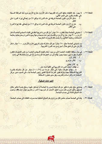 المادة : 27لا يجوز عقد اتفاقيات بتنفيذ الدورات التدريبية داخل الأردن /خارج الأردن دون أخذ الموافقة المسبقة