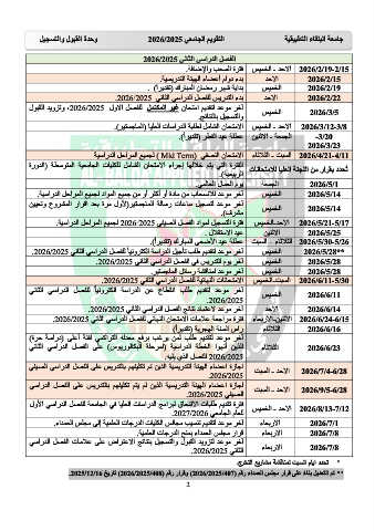 ** ﺗﻢ ﺍﻟﺘﻌﺪﻳﻞ ﺑﻨﺎ ًء ﻋﻠﻰ ﻗﺮﺍﺭ ﻣﺠﻠﺲ ﺍﻟﻌﻤﺪﺍء ﺭﻗﻢ ) (2026/2025/407ﻭﻗﺮﺍﺭ ﺭﻗﻢ ) (2026/2025/408ﺗﺎﺭﻳﺦ .2025/12/16