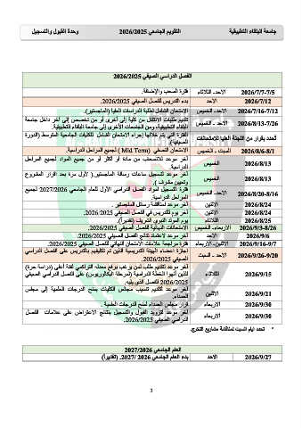 ﻭﺣﺪﺓ ﺍﻟﻘﺒﻮﻝ ﻭﺍﻟﺘﺴﺠﻴﻞ ﺍﻟﺘﻘﻮﻳﻢ ﺍﻟﺠﺎﻣﻌﻲ 2026/2025 ﺟﺎﻣﻌﺔ ﺍﻟﺒﻠﻘﺎء ﺍﻟﺘﻄﺒﻴﻘﻴﺔ